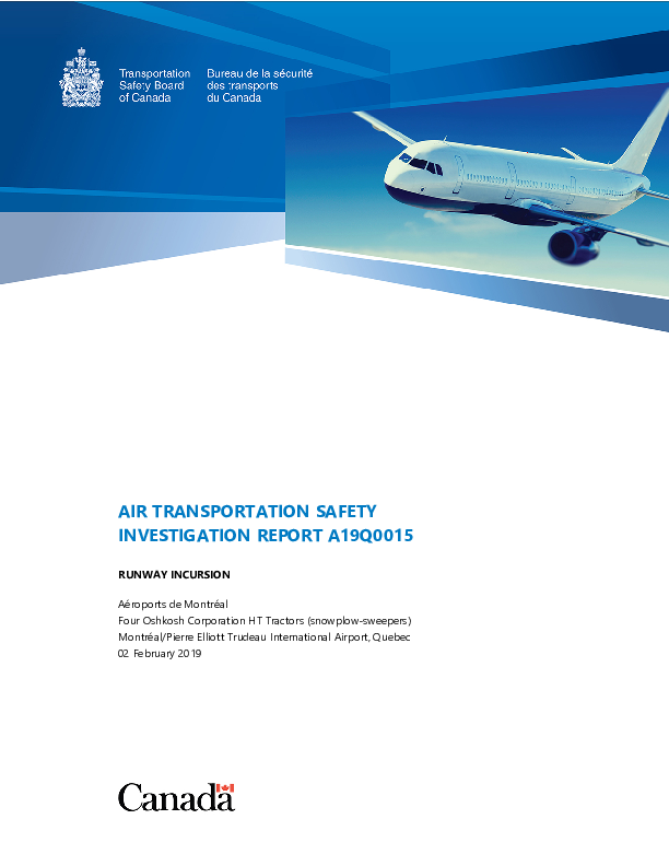 On 2 February 2019, a Bombardier CRJ200 narrowly avoided collision with part of a convoy of snowplough vehicles which had entered the landing runway without clearance less than 10 seconds before touchdown and begun to position on the centreline. The Investigation found that despite the prompt initiation of a go-around on sighting the vehicles, the aircraft was likely to have cleared them by less than 100 feet. A number of opportunities for improved ground vehicle movement procedures were identified and the incursion was seen as indicative of a general need to more effectively address this risk at Canadian airports.