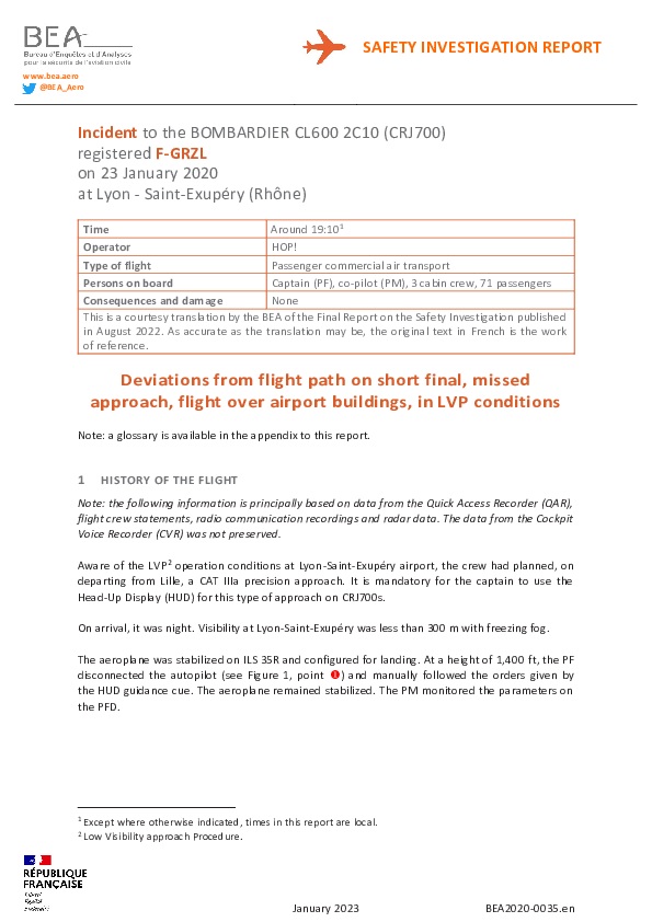 Final Report CRJ7 ( F-GRZL), Lyon St Exupery France, 23 January 2020