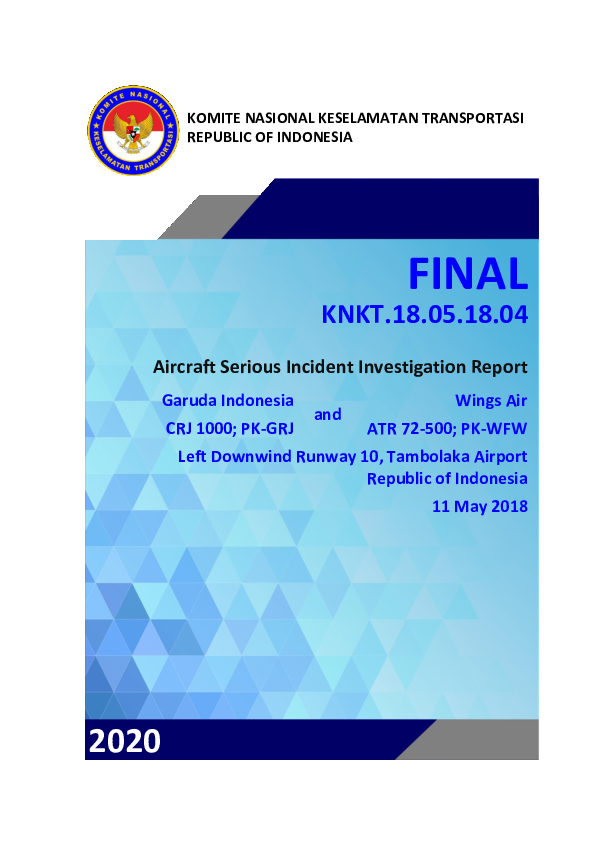 Final Report CRJX (PK-GRJ) & AT&% (PF-WFW_, vicinity Tambolaka Indonesia, 11 May 2018