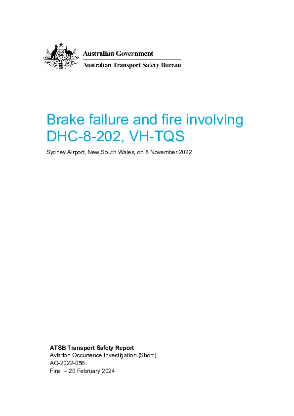 Final Report DH8B (VH-TQS), Sydney Australia, 8 November 2022