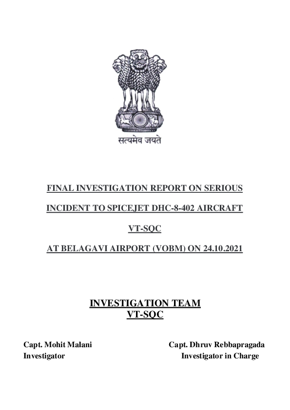 Final Report DH8D (VT-SQC), Belagavi India, 24 October 2021