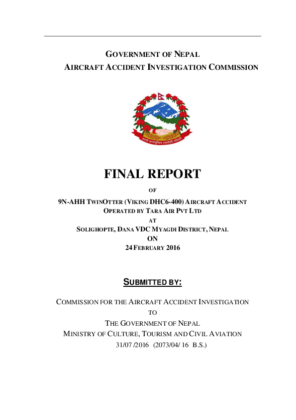 Final Report DHC6 (9N-AHH), en-route, south southwest of Jomsom Nepal, 24 February 2016