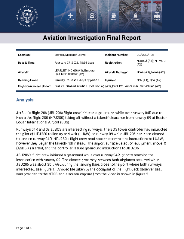 Final Report E190 (N179JB) & LJ60 (N280LJ), Boston USA, 27 February 2023