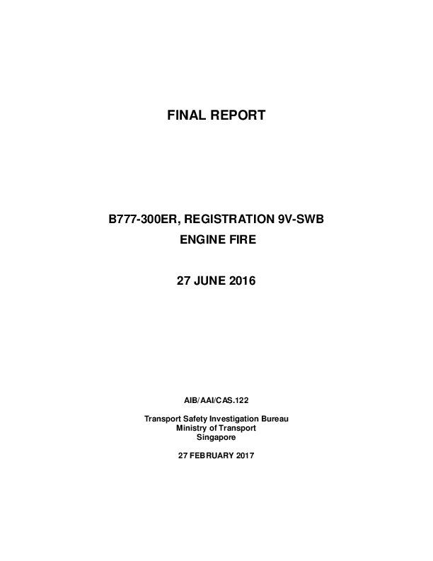 Final Report Engine Fire B777-300ER (9V-SWB), Singapore, 27 June 2016