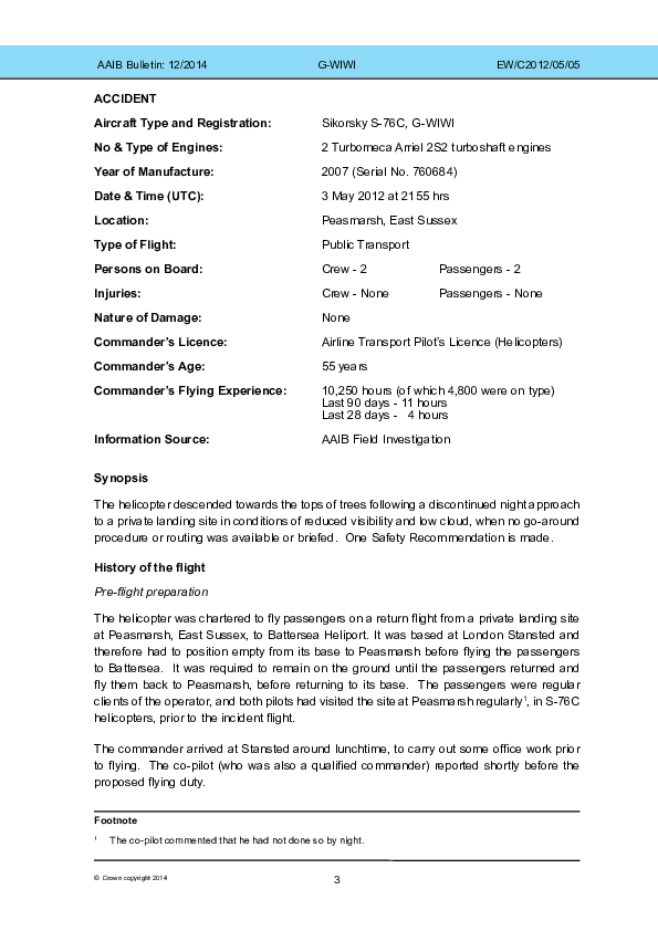 Final report, EW/C2012/05/05, Sikorsky S-76C, G-WIWI, Peasmarsh, East Sussex