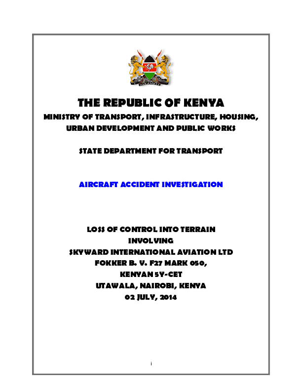 Final Report F50 (5Y-CET) vicinity Nairobi Kenya, 2 July 2014