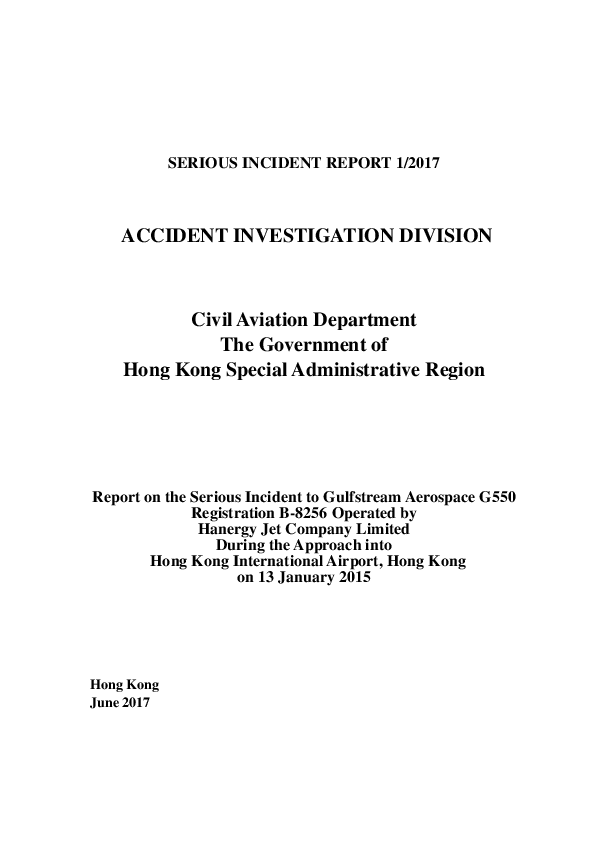 Final Report GLF5 (B-8256) vicinity Hong Kong China 13 Jan 2015
