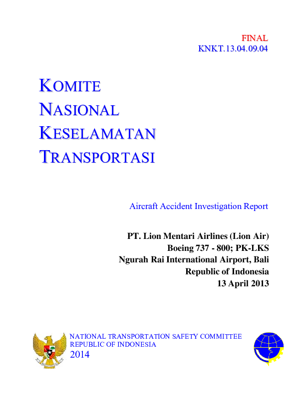 Final Report KNKT.13.04.09.04, B738 CFIT Bali, Indonesia, 13 Apr. 2013