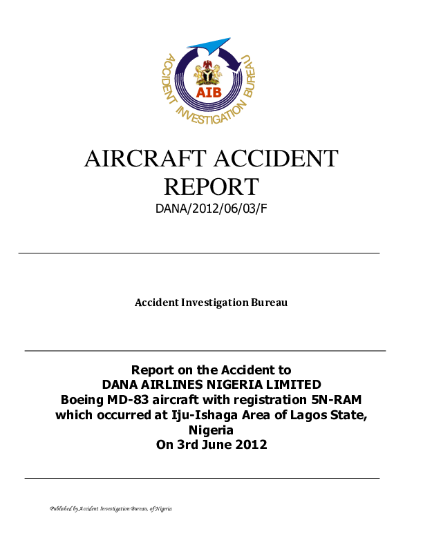 Final Report MD83 (5N-RAM), vicinity Lagos Nigeria, 3 June 2012