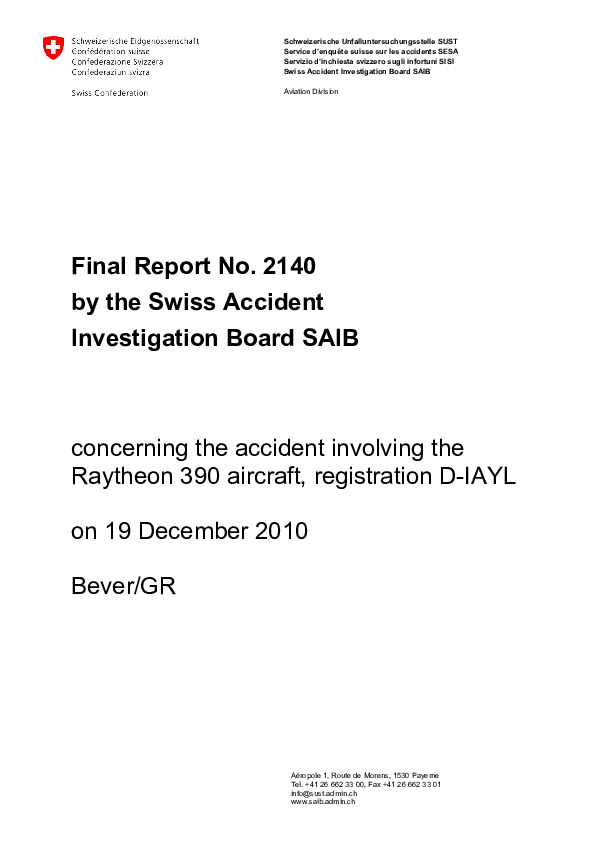 Final Report No. 2140, Raytheon 390 accident during missed approach, Samedan Switzerland 19 Dec. 201