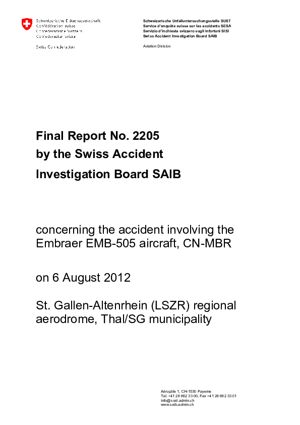 Final Report No. 2205, E55P, St Gallen-Altenrhein Switzerland, 2012