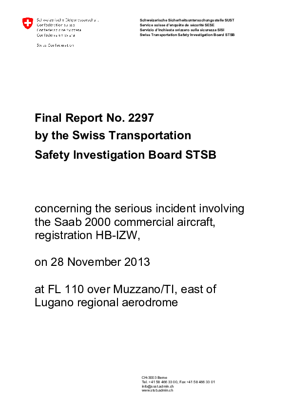Final Report No. 2297 SB20 (HB-IZW) en-route Muzzano Switzerland, 28 Nov 2013