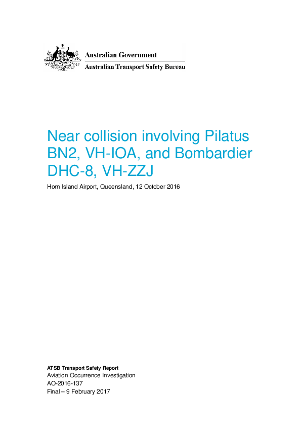 Final Report Pilatus BN2, VH-IOA, & Bombardier DHC-8, VH-ZZJ, Horn Island QLD Australia, 12 Oct 2016