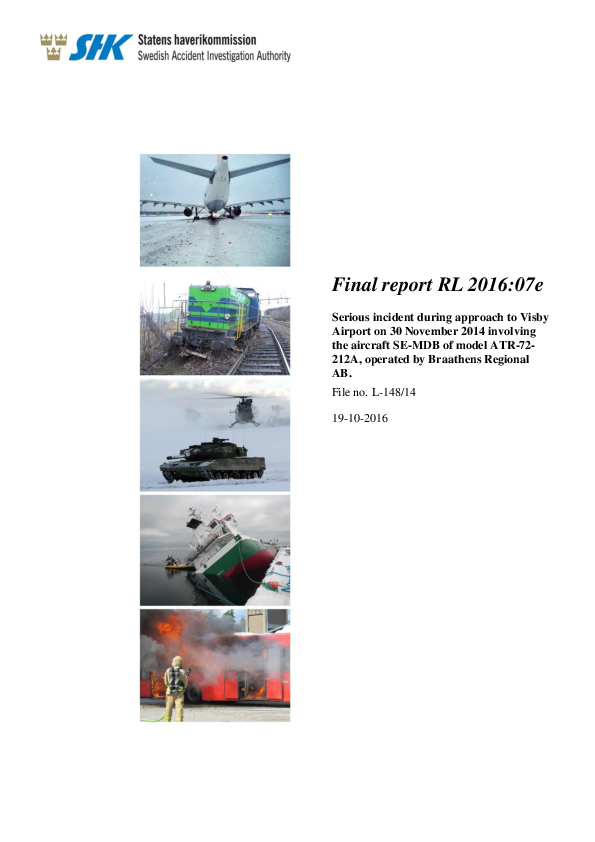 Final report RL 2016:07e: ATR-72- 212A ((SE-MDB) north of Visby Sweden, 30 Nov 2014