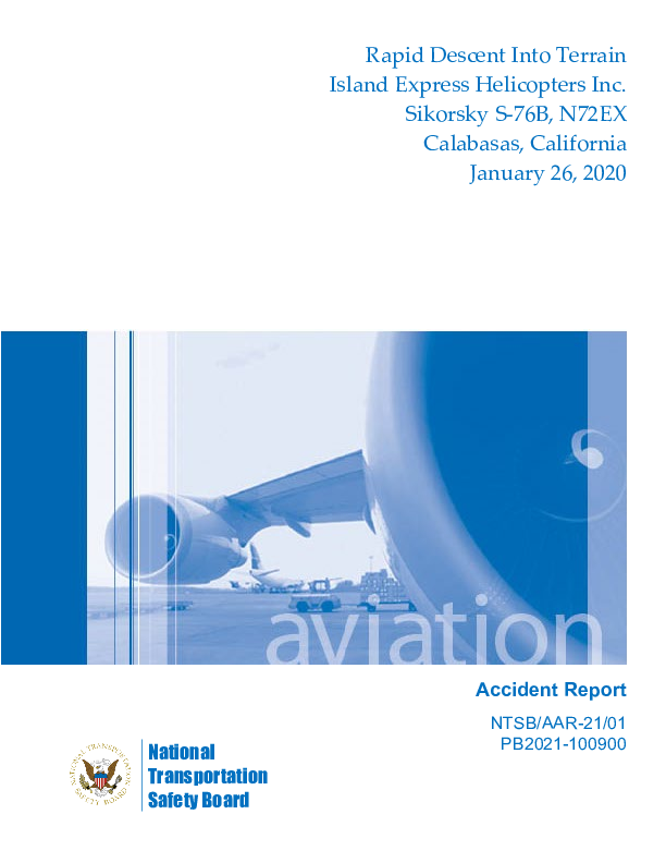 Final Report S76 (N72EX) NW of LA USA, 26 January 2020