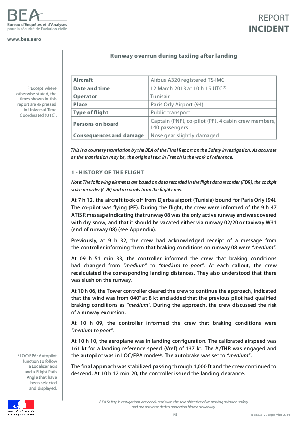 Final report, Tunisair, A320, TS-IMC, LFPO, RE