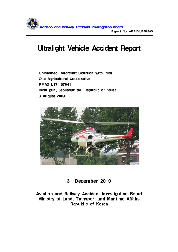 Final Report UAV RMAX L17 (S7044), near Imsil-gun South Korea, 3 August 2009
