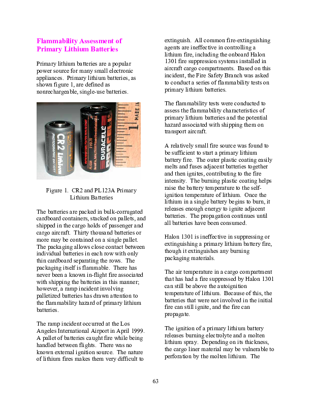 Flammability Assessment of Primary Lithium Batteries