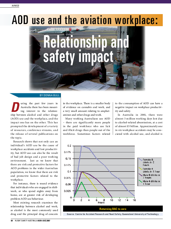 Flight Safety Australia article: AOD use and the aviation workplace, Nov-Dec 2007