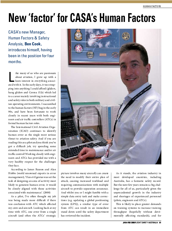 Flight Safety Australia article: New factor for human factors, jan-Feb 2008