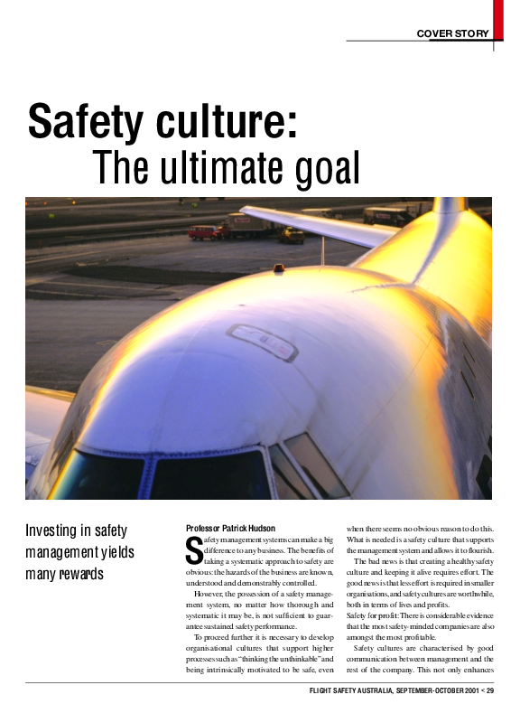Flight Safety Australia article: Safety Culture, Sep-Oct 2001
