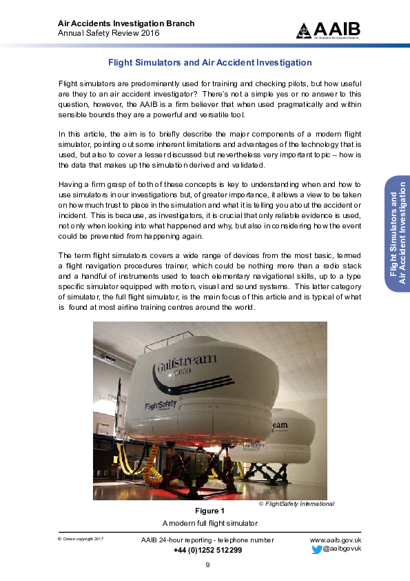 An article in the AAIB 2016 Annual Safety Review on the benefits and limitations of using flight simulators in accident investigations.