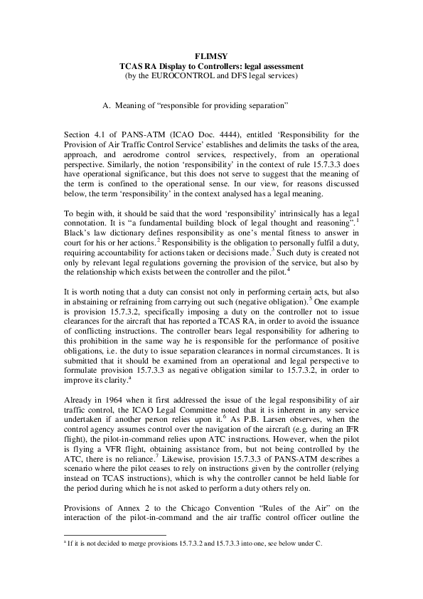 FLIMSY TCAS RA Display to Controllers: legal assessment