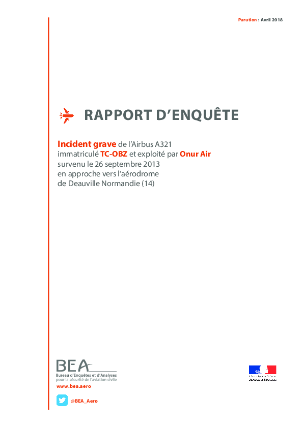 [French] Final Report A321 (TC-OBZ), vicinity Deauville France, 26 Sept 2013