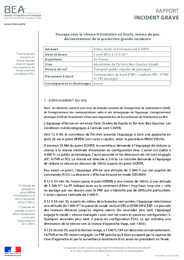 On 3 April 2012, the crew of an Air France Airbus A320 came close to loosing control of their aircraft after accepting, inadequately preparing for and comprehensively mismanaging it during an RNAV VISUAL approach at Tel Aviv and during the subsequent attempt at a missed approach. The Investigation identified significant issues with crew understanding of automation - especially in respect of both the use of FMS modes and operations with the AP off but the A/T on - and highlighted the inadequate provision by the aircraft operator of both procedures and pilot training for this type of approach.