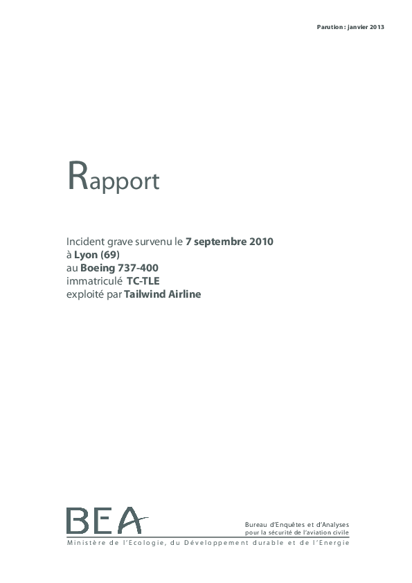 (French) Serious incident on 7 September 2010 at Lyon France, B734