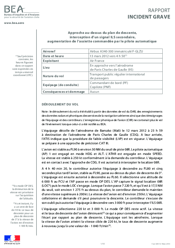 (French) Serious Incident, A343 unstabilised approach, Paris CDG, 13 March 2012