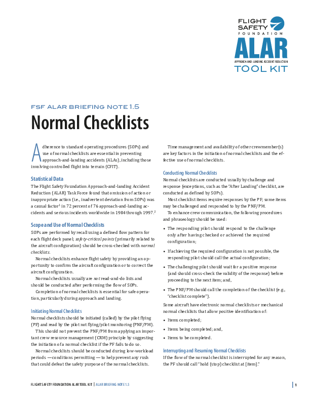 FSF ALAR Briefing Note 1.5 - Normal Checklists
