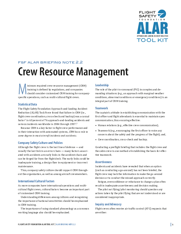 FSF ALAR Briefing Note 2.2 - Crew Resource Management