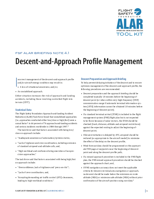 FSF ALAR Briefing Note 4.1 - Descent-and-approach Profile Management
