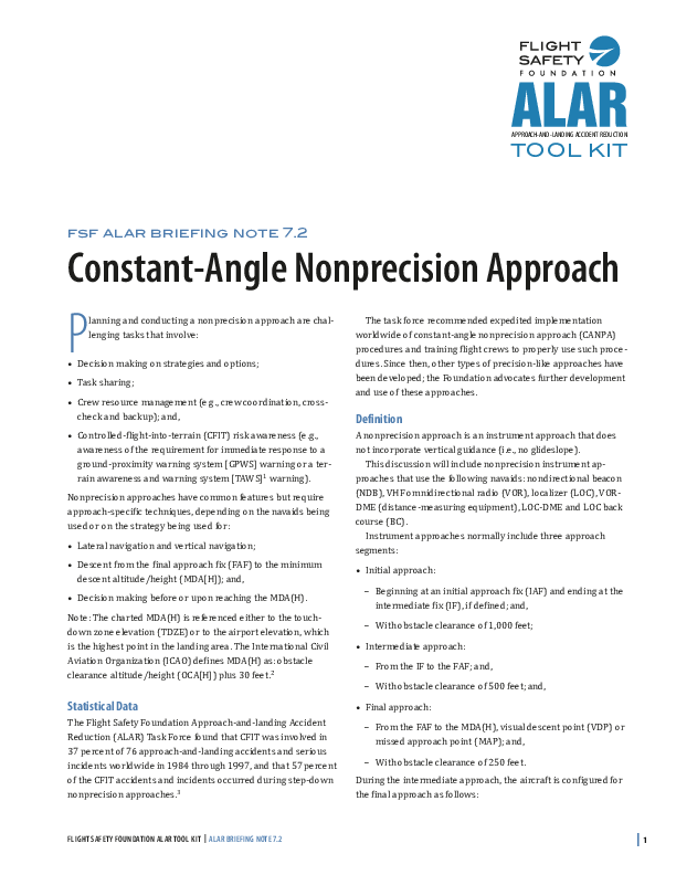 FSF ALAR Briefing Note 7.2 - Constant-angle Nonprecision Approach