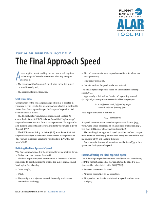 FSF ALAR Briefing Note 8.2 - The Final Approach Speed