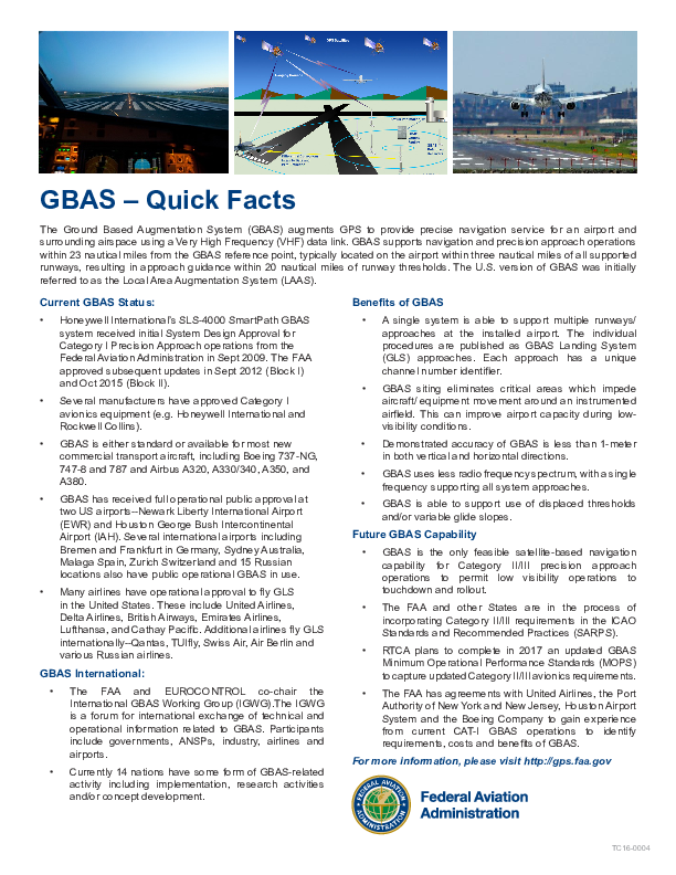 The Ground Based Augmentation System (GBAS) augments GPS to provide precise navigation service for an airport and surrounding airspace using a Very High Frequency (VHF) data link. GBAS supports navigation and precision approach operations within 23 nautical miles from the GBAS reference point.