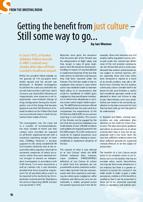 Getting the benefit from just culture - still some way to go