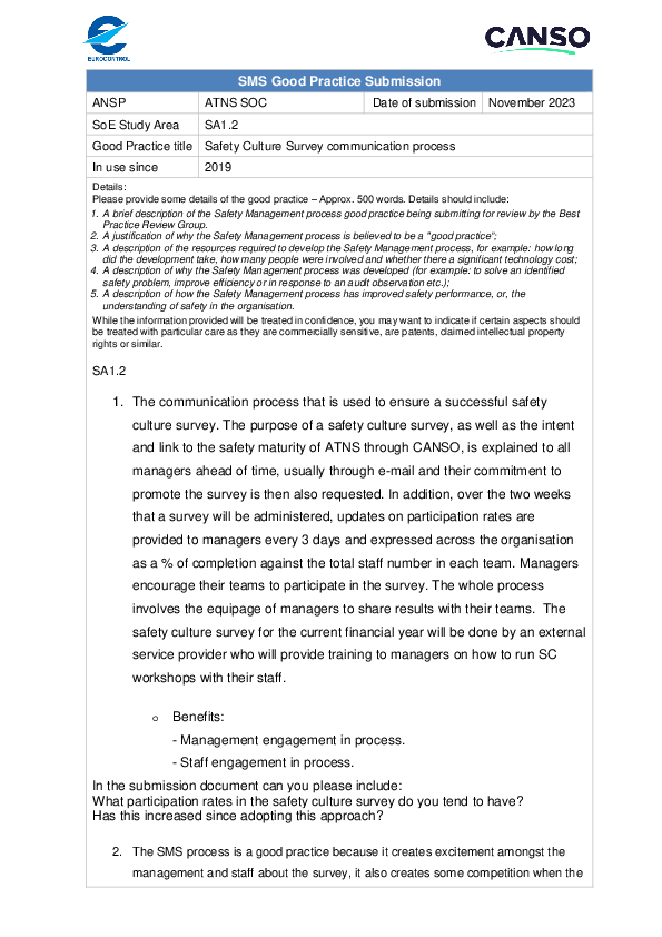 GP SA 1.2 Safety Culture Survey communication process