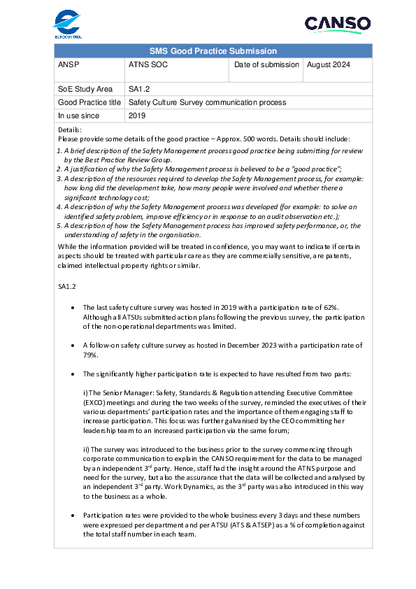 GP SA 1.2 Safety Culture Survey communication process