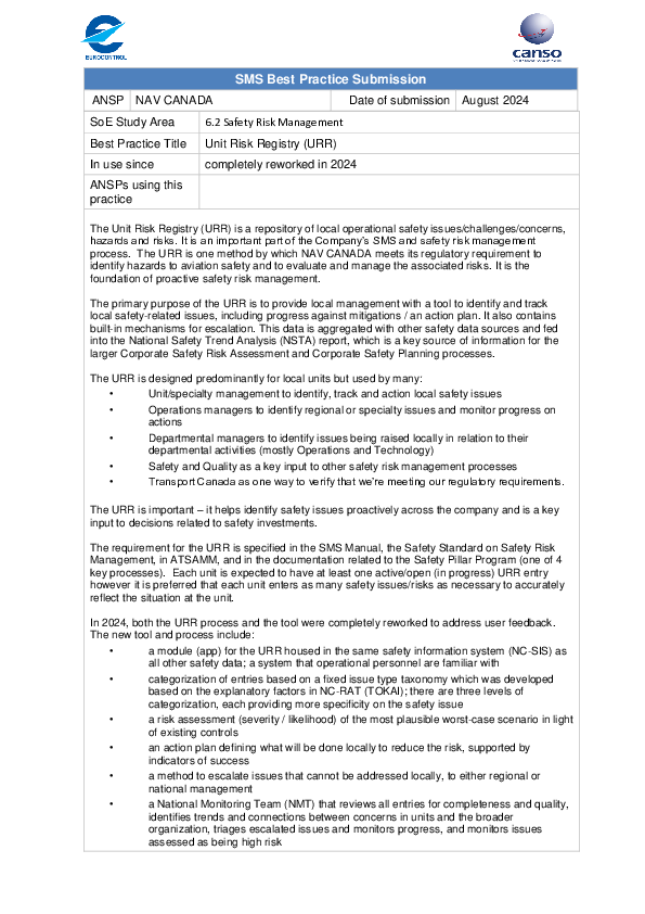 GP SA 6.2 Unit Risk Registry (URR)