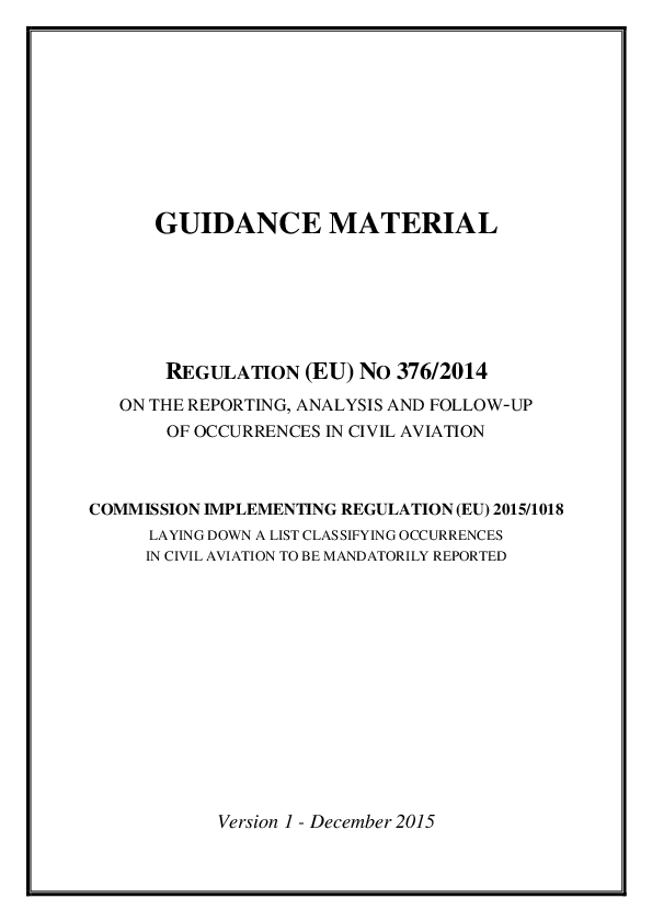 Guidance material for Regulation (EU) 376/2014 on the reporting, analysis and follow-up of occurrences in civil aviation and Regulation (EU) 2015/1018 laying down a list of classifying occurrences in civil aviation to be monditorily reported