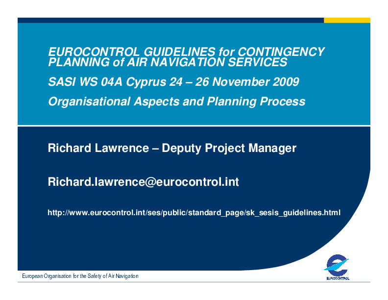 Guidelines for Contingency: Organisational Aspects and Planning Process