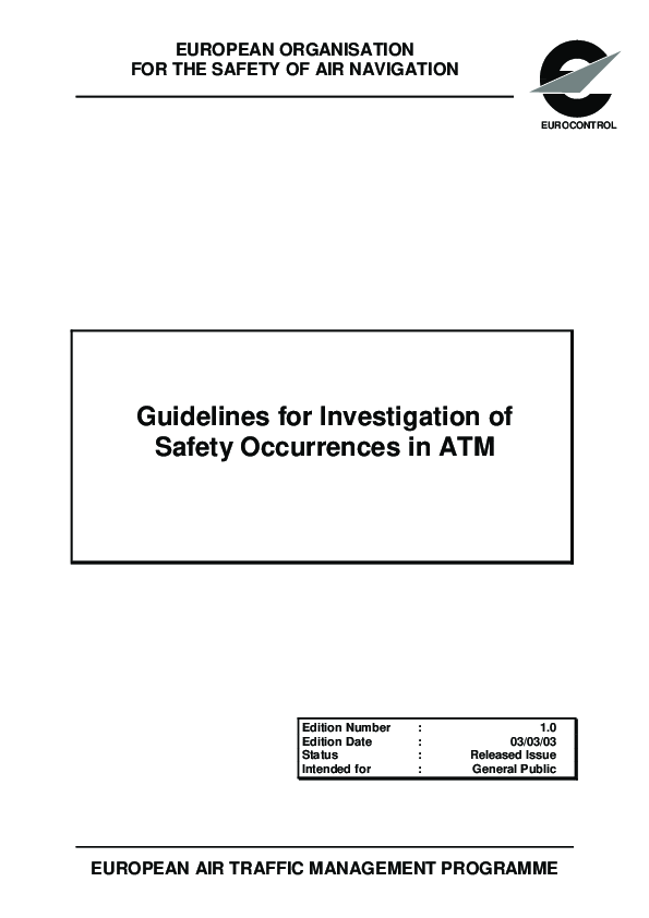 This document is intended to help ANSPs implement and maintain the regulatory requirement for safety achievement “Safety Occurrences from ESARR3; the regulatory requirements from ESARR2; and the EUROCONTROL Safety Policy Principle “Safety Occurrences.