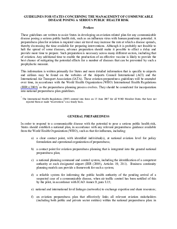 Guidelines for States Concerning the Management of Communicable Disease Posing a Serious Public Heal