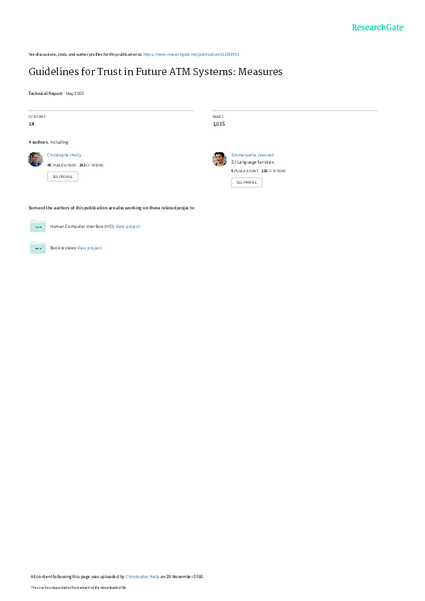 The purpose of this document is to describe the development, evaluation, validation and potential use of a measure of Air Traffic Control (ATC) trust. The measure, named ‘SATI’ for ‘SHAPE ATM Trust Index’, is primarily concerned with human trust of ATC computer-assistance tools and other forms of automation support, which are expected to be major components of future Air Traffic Management (ATM) systems.
