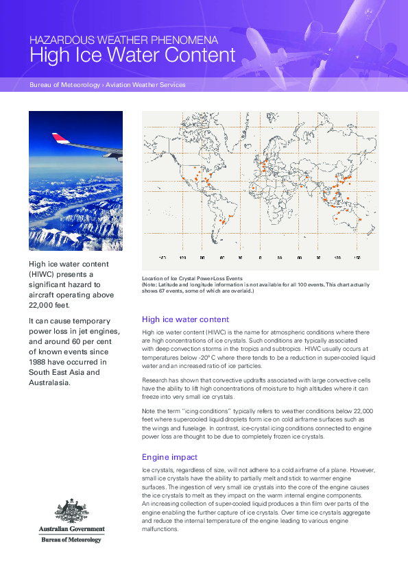 A brochure on high level ice crystal icing by the Australian Bureau of Meteorology.