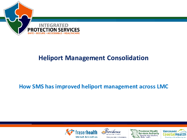 Presentation to SM ICG industry day, 11 Dec 15, looking at how SMS has improved heliport management across LMC. Medical Services