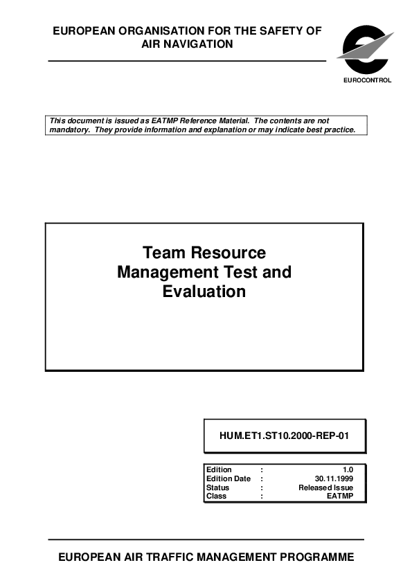 The Human Factors Task Force introduced, tested and evaluated TRM in a number of European States. The document aims to share the experiences of the Task Force and to advise the implementation and application of the TRM concept in the European Civil Aviation Conference area. The report includes a prototype course for TRM