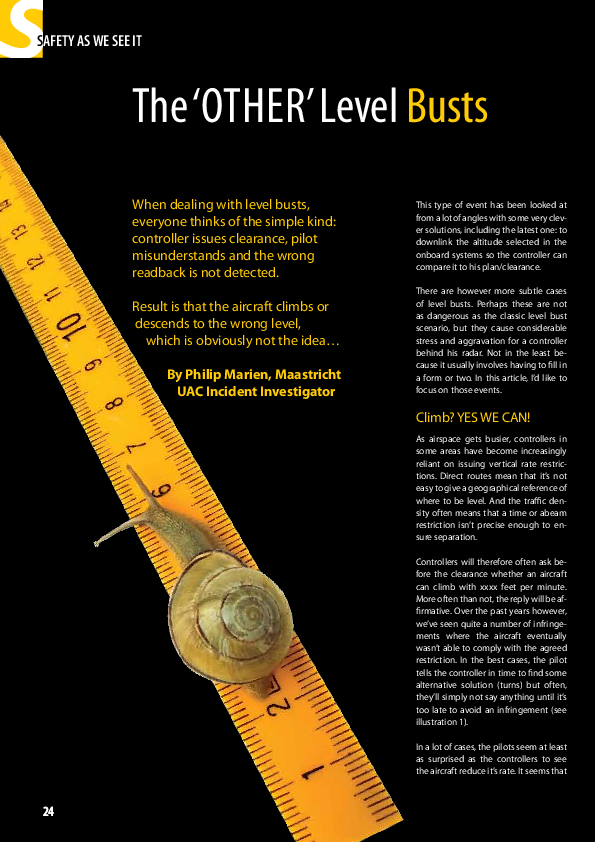 When dealing with level busts, everyone thinks of the simple kind: controller issues clearance, pilot misunderstands and the wrong readback is not detected. This article deals with other, more subtle examples.